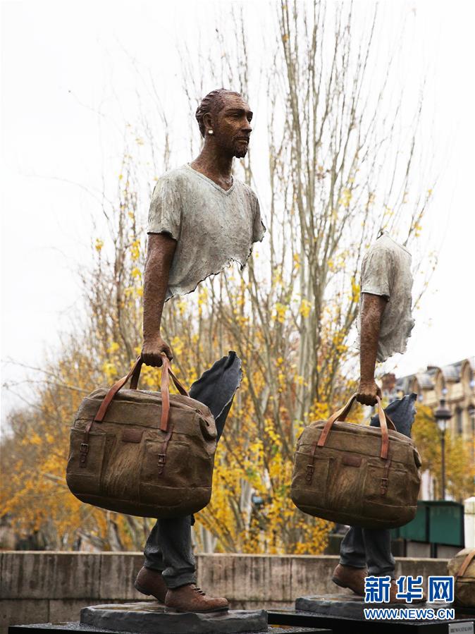 这是11月27日在法国巴黎街头拍摄的雕塑作品。 新华社记者 高静 摄