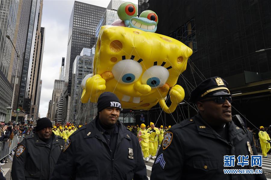 11月28日,在美国纽约举行的感恩节大游行上,卡通气球行进在曼哈顿街头。 当日,2019梅西感恩节大游行在纽约举行,各式各样的玩偶气球、花车队伍在曼哈顿的摩天大楼间穿行,吸引数百万民众前来观看。梅西感恩节大游行始于1924年,是全美规模最大的感恩节游行。 新华社记者 李木子 摄