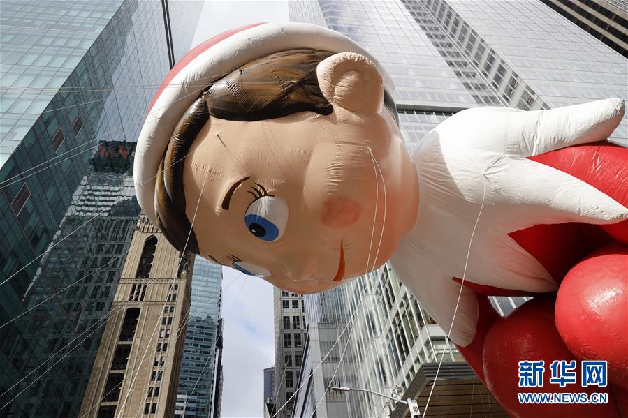 11月28日,在美国纽约举行的感恩节大游行上,卡通气球行进在曼哈顿街头。 当日,2019梅西感恩节大游行在纽约举行,各式各样的玩偶气球、花车队伍在曼哈顿的摩天大楼间穿行,吸引数百万民众前来观看。梅西感恩节大游行始于1924年,是全美规模最大的感恩节游行。 新华社记者 李木子 摄