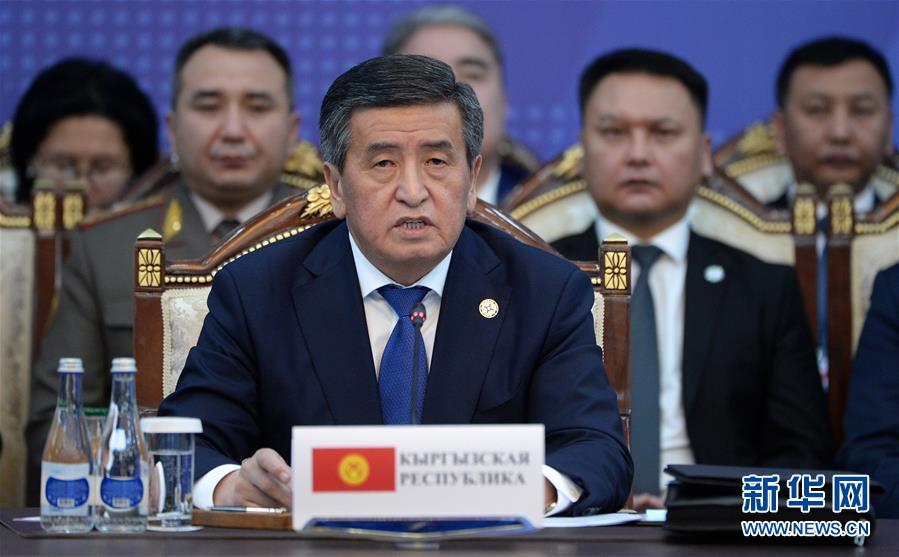 11月28日,吉尔吉斯斯坦总统热恩别科夫在峰会上发言。 当日,集体安全条约组织(集安组织)峰会在吉尔吉斯斯坦首都比什凯克举行。 新华社发(罗曼 摄)