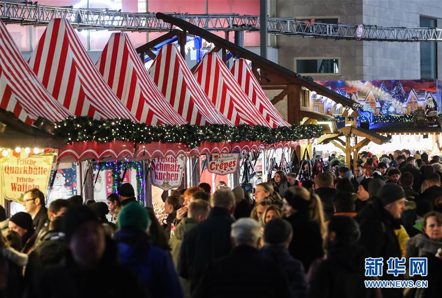 11月29日,在德国首都柏林,游客游览亚历山大广场圣诞市场。 柏林多个圣诞市场近日陆续拉开帷幕,特色饮食、手工艺品以及游乐设施吸引了众多游客前来。 新华社记者单宇琦摄
