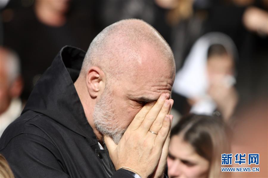 11月30日,在阿尔巴尼亚都拉斯,阿尔巴尼亚总理拉马出席地震遇难者的葬礼。 当日,阿尔巴尼亚为部分地震遇难者举行葬礼。目前,地震搜救行动已经结束,26日凌晨该国发生的6.4级地震已造成51人死亡。 新华社发( 阿尔本·切利 摄)