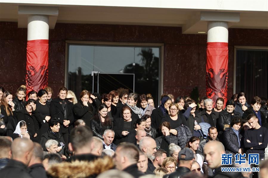 11月30日,在阿尔巴尼亚都拉斯,人们出席地震遇难者的葬礼。 当日,阿尔巴尼亚为部分地震遇难者举行葬礼。目前,地震搜救行动已经结束,26日凌晨该国发生的6.4级地震已造成51人死亡。 新华社发( 阿尔本·切利 摄)