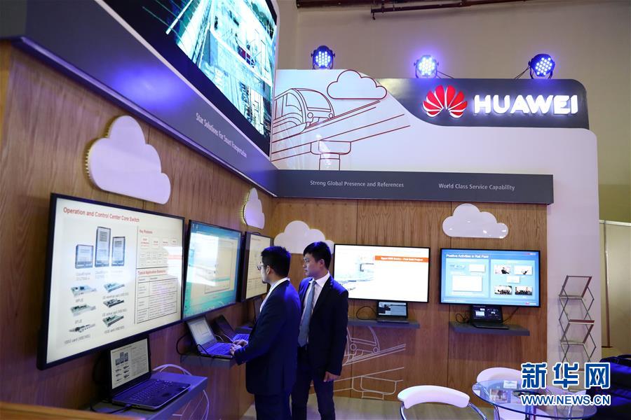 这是12月1日在埃及开罗信息通信技术展上拍摄的华为展台。新华社发(艾哈迈德·戈马摄)
