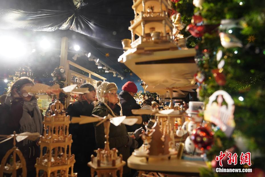 当地时间11月30日晚,人们在有柏林“最美广场”之称的御林广场(又称宪兵广场)圣诞集市上选购节日装饰品。圣诞和新年是德国一年里最热闹的节庆。距离圣诞节不到一个月,德国各地的圣诞市场也陆续开门迎客。中新社记者 彭大伟 摄