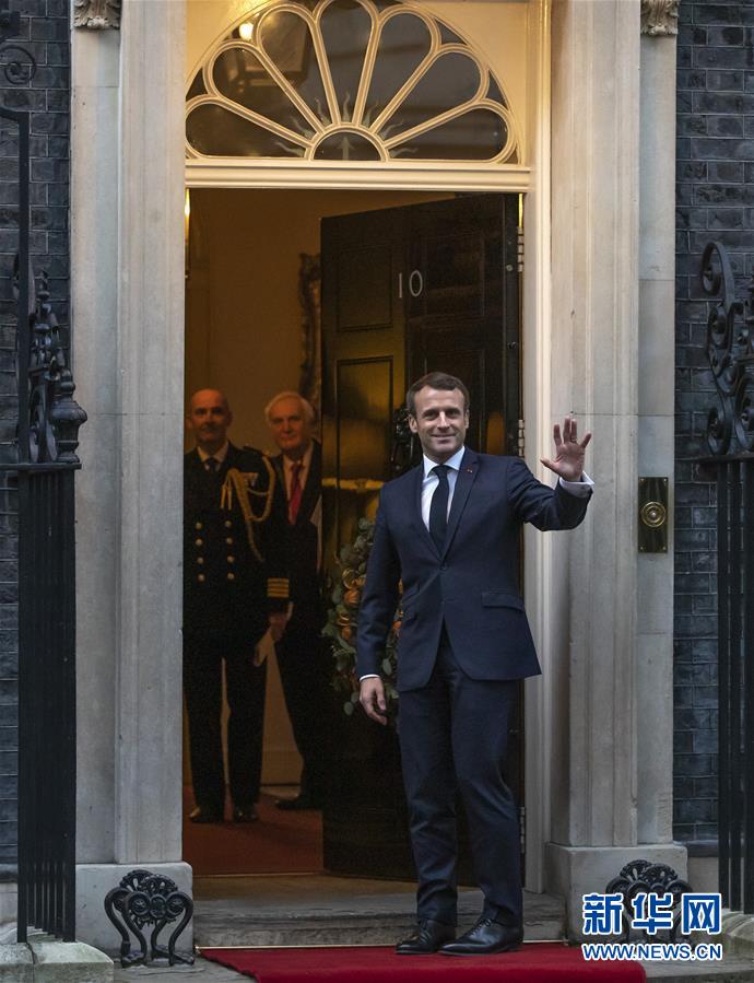 12月3日,在英国伦敦,法国总统马克龙抵达唐宁街10号首相府。当日,法国、德国、土耳其三国领导人在出席北约峰会期间来到位于伦敦的唐宁街10号首相府,与英国首相进行会谈。新华社记者韩岩摄