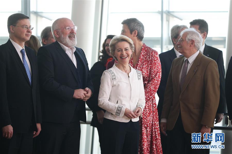 12月4日,在比利时首都布鲁塞尔的欧盟总部,新任欧盟委员会主席冯德莱恩(中)准备与新一届欧盟委员会委员合影。 当天,新一届欧盟委员会第一次会议在比利时布鲁塞尔的欧盟总部举行。11月27日,欧洲议会在法国斯特拉斯堡投票通过了以乌尔苏拉·冯德莱恩为主席的新一届欧盟委员会委员名单。12月1日,冯德莱恩正式就职。 新华社记者 郑焕松 摄