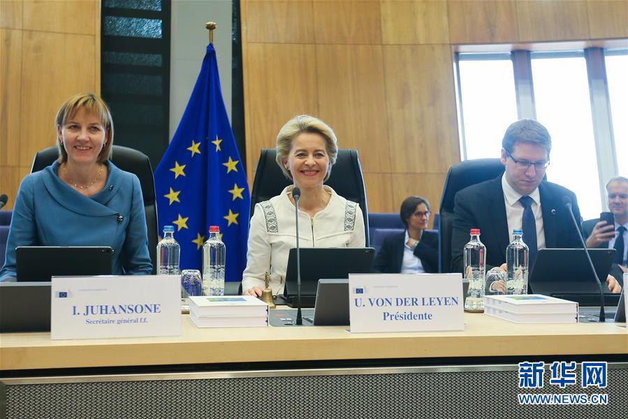 12月4日,在比利时首都布鲁塞尔的欧盟总部,新任欧盟委员会主席冯德莱恩(中)出席她领衔的欧委会第一次会议。 当天,新一届欧盟委员会第一次会议在比利时布鲁塞尔的欧盟总部举行。11月27日,欧洲议会在法国斯特拉斯堡投票通过了以乌尔苏拉·冯德莱恩为主席的新一届欧盟委员会委员名单。12月1日,冯德莱恩正式就职。 新华社记者 郑焕松 摄
