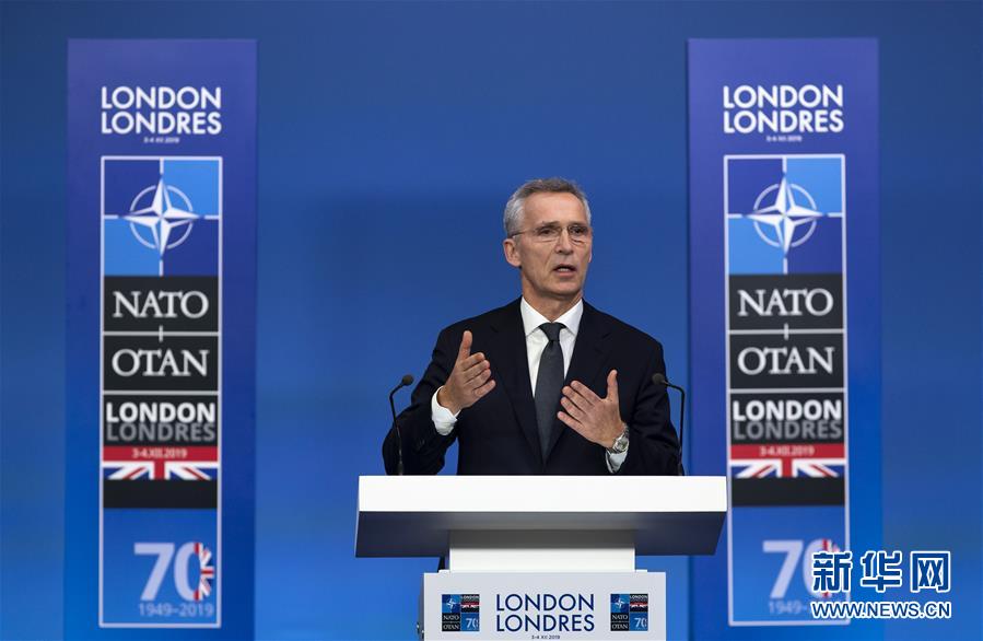12月4日,在英国伦敦,北约秘书长斯托尔滕贝格在新闻发布会上讲话。新华社记者 韩岩 摄