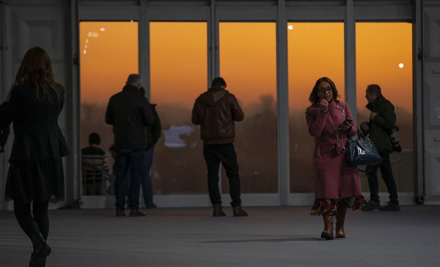 12月4日,在英国伦敦,媒体人员在新闻中心忙碌。 北大西洋公约组织(北约)峰会于12月3日至4日在英国伦敦举行。 新华社记者 韩岩 摄