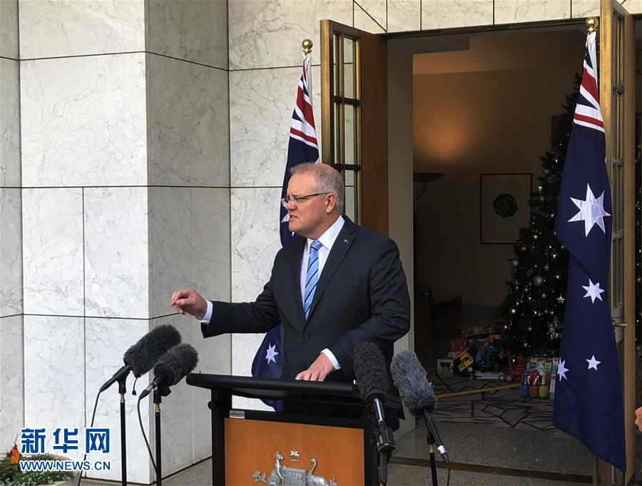 12月5日,澳大利亚总理莫里森在位于首都堪培拉的国会大厦出席新闻发布会。 澳大利亚总理莫里森5日宣布政府机构改革措施,把目前18个政府部门合并缩减为14个。莫里森说,此次改革是为了消除官僚机构臃肿,提升政府决策能力,改善公共服务。 新华社记者 白旭 摄