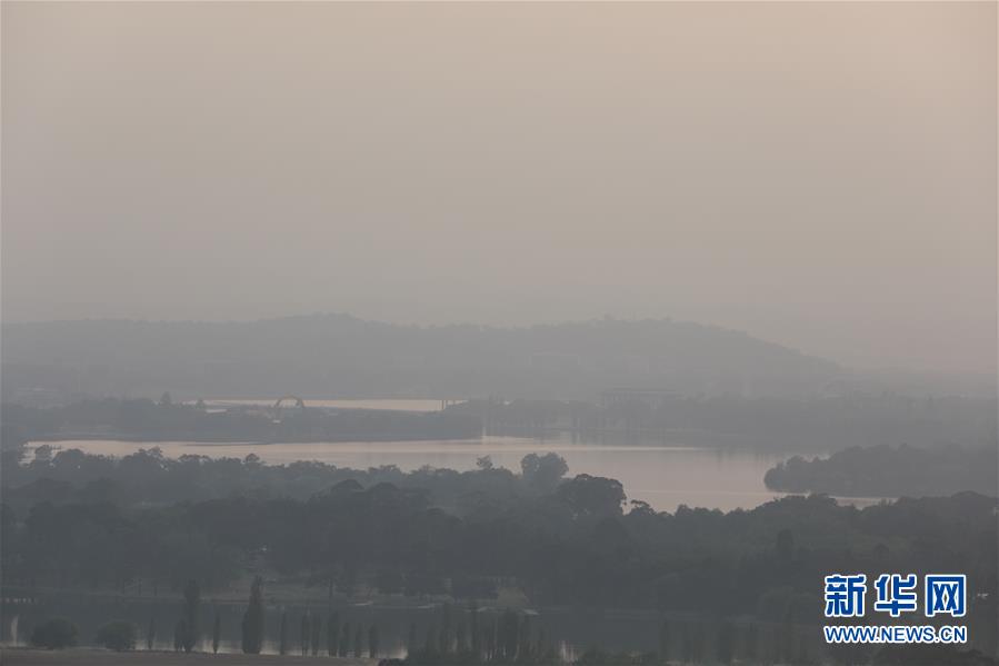 12月8日清晨,在澳大利亚堪培拉,林火造成的浓烟弥漫在伯利格里芬湖上空。 澳大利亚新南威尔士州的林火已持续数日,7日傍晚到8日,大量烟尘笼罩澳大利亚首都堪培拉及附近地区。 新华社发(储晨摄)