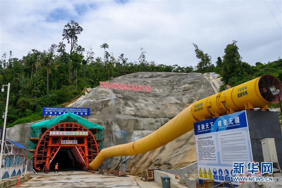 12月6日,在马来西亚关丹,一名工人走进东海岸铁路项目关丹隧道建设工地。新华社记者朱炜摄