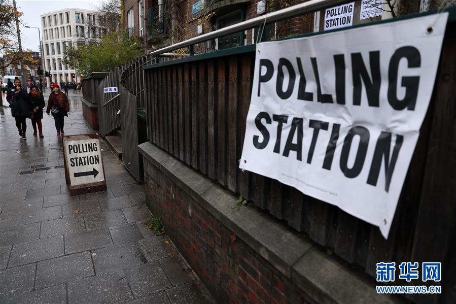 12月12日,在英国伦敦,行人经过一处投票站。 英国议会下院选举投票于当地时间12日7时开始。此次选举被称为“决定命运”的一次选举。 新华社发(蒂姆·爱尔兰 摄)