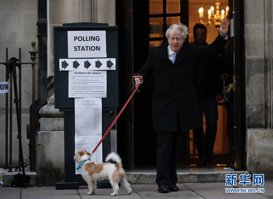 12日晚公布的出口民调显示,英国首相鲍里斯·约翰逊领导的保守党在当天举行的英国议会下院选举中得票率领先,并将取得议会下院绝对多数席位。 新华社发(雷伊·唐摄)