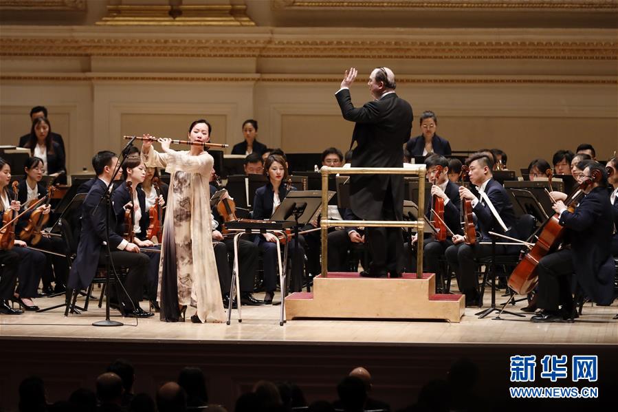 12月13日,在美国纽约,中央音乐学院交响乐团在卡内基音乐厅演出。 13日晚,中央音乐学院交响乐团首次亮相美国纽约卡内基音乐厅,演奏“当代中国最活跃的八位作曲家”的作品,带给现场数千名观众和而不同的交响乐。 新华社记者 李木子 摄
