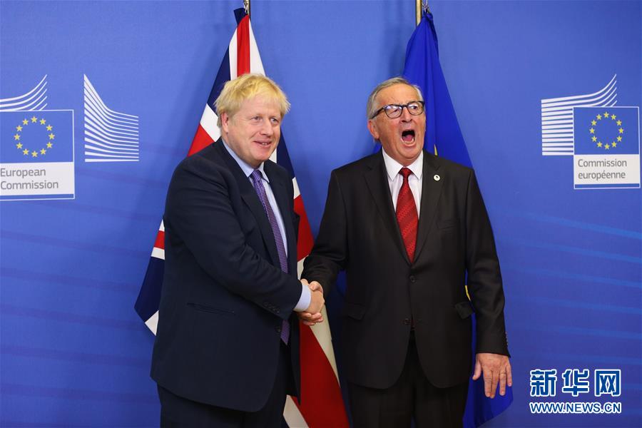10月17日,在比利时布鲁塞尔的欧盟总部,英国首相约翰逊(左)与欧盟委员会主席容克在共同会见记者时握手。容克当日宣布,欧盟委员会与英国政府就英国“脱欧”达成协议。 英国“脱欧”僵局已持续3年有余。2019年,英国“脱欧”进程在重重阻碍中艰难推进,再三“爽约”,直到年底才出现转机。在12月12日举行的大选中,现任首相鲍里斯·约翰逊率领保守党赢得英国议会下院多数席位,使得英国在明年1月31日脱离欧盟的可能性大大增加。 新华社记者郑焕松摄
