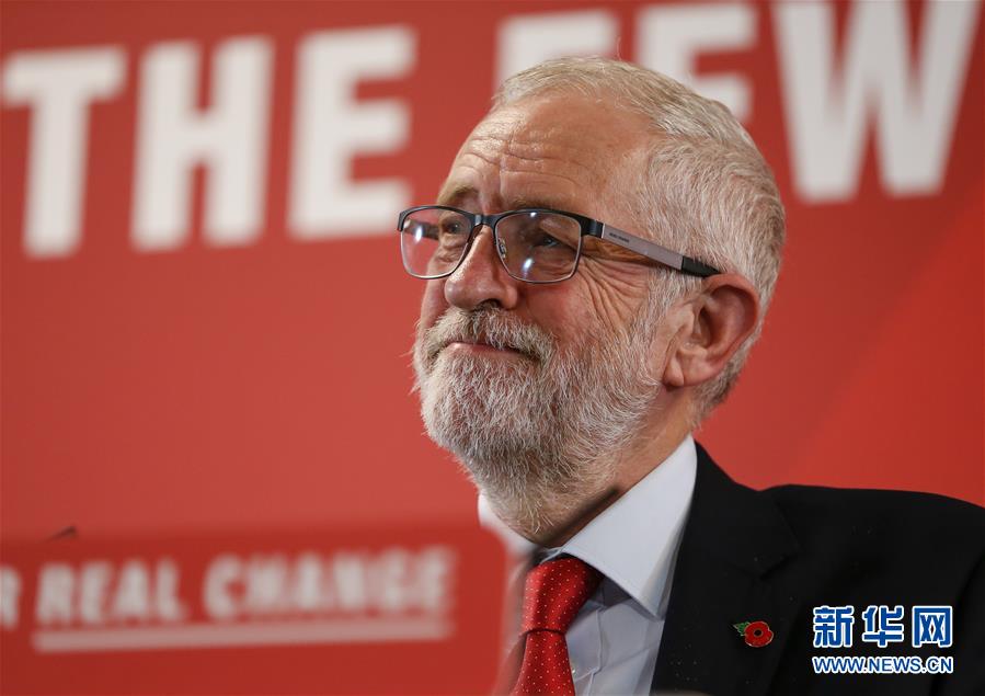 11月5日,在英国哈洛,英国工党领袖科尔宾发表演说。当日,科尔宾来到哈洛为大选拉票,并就“脱欧”问题发表演说。 英国“脱欧”僵局已持续3年有余。2019年,英国“脱欧”进程在重重阻碍中艰难推进,再三“爽约”,直到年底才出现转机。在12月12日举行的大选中,现任首相鲍里斯·约翰逊率领保守党赢得英国议会下院多数席位,使得英国在明年1月31日脱离欧盟的可能性大大增加。 新华社记者韩岩摄
