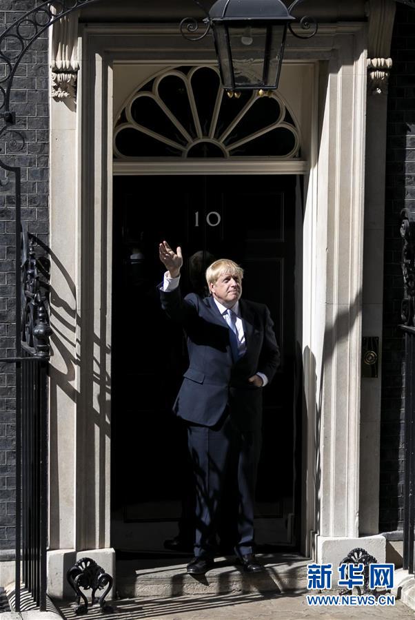 7月24日,在英国伦敦,新就任的英国首相鲍里斯·约翰逊在唐宁街10号首相府门口挥手致意。 英国“脱欧”僵局已持续3年有余。2019年,英国“脱欧”进程在重重阻碍中艰难推进,再三“爽约”,直到年底才出现转机。在12月12日举行的大选中,现任首相鲍里斯·约翰逊率领保守党赢得英国议会下院多数席位,使得英国在明年1月31日脱离欧盟的可能性大大增加。 新华社记者 韩岩 摄