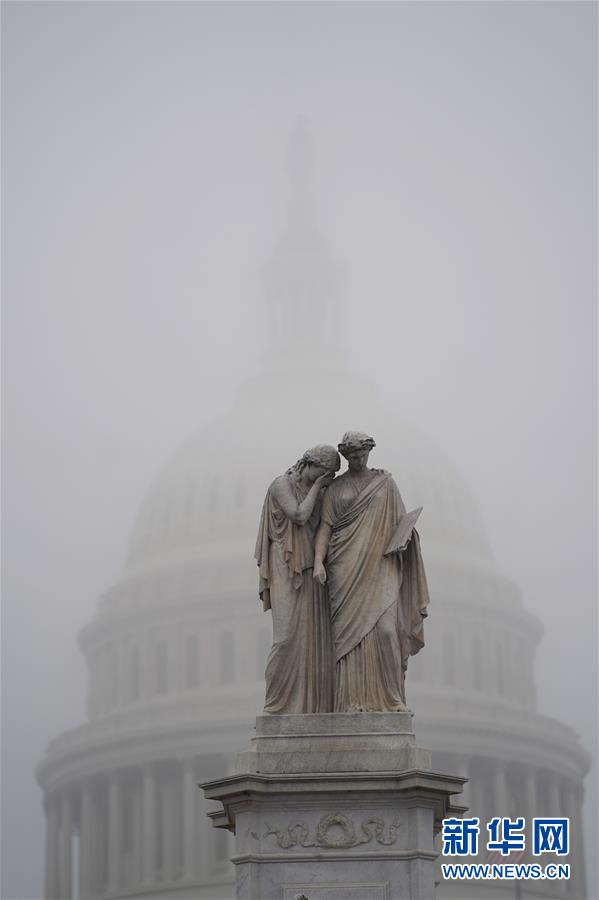 这是12月17日在美国首都华盛顿拍摄的雾中的美国国会大厦。 美国国会众议院议长、民主党人佩洛西17日说,该院将于18日就针对总统特朗普的两项弹劾条款进行表决。特朗普当天则致信佩洛西,强烈反对针对他的弹劾案。 新华社记者 刘杰 摄