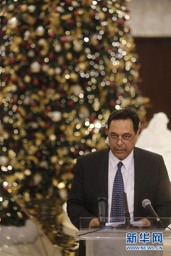 12月19日,在位于黎巴嫩巴卜达的总统府,黎巴嫩新任总理哈桑·迪亚卜举行记者会。 黎巴嫩总统米歇尔·奥恩当日宣布,任命前教育部长哈桑·迪亚卜为新一届政府总理。 新华社发(比拉尔·贾维希摄)