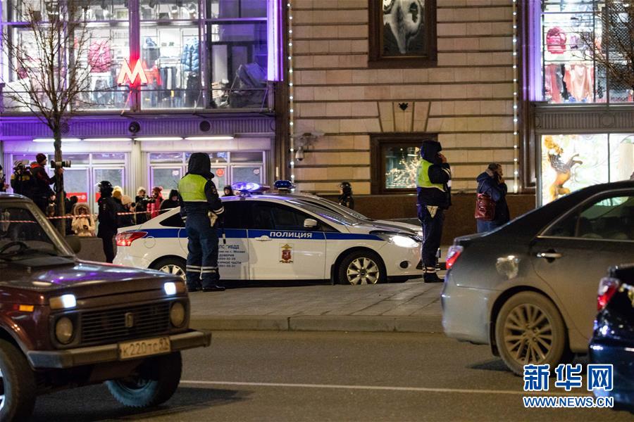 12月19日,在俄罗斯首都莫斯科,警察在枪击案现场附近警戒。新华社记者 白雪骐 摄