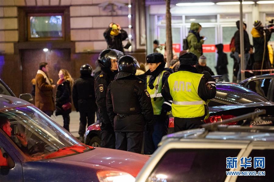 12月19日,在俄罗斯首都莫斯科,警察在枪击案现场附近警戒。新华社记者 白雪骐 摄