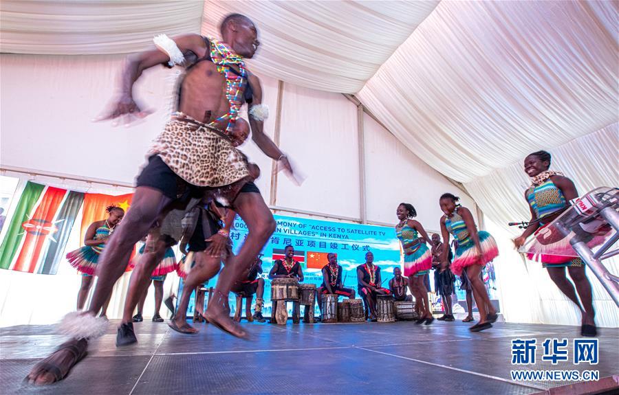 12月20日,在肯尼亚首都内罗毕,演员在中国援非“万村通”肯尼亚项目竣工仪式上表演当地特色舞蹈。