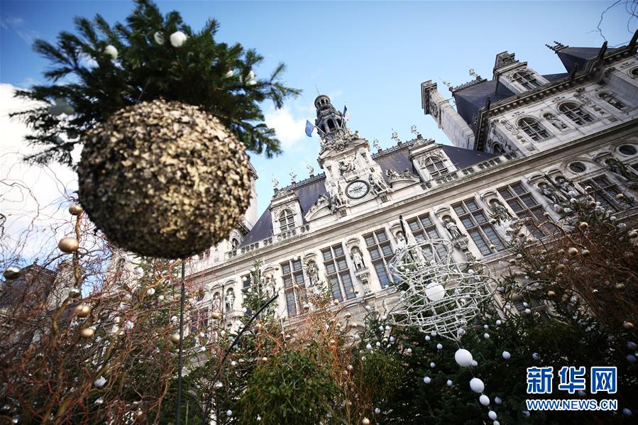 这是12月20日在法国巴黎市政厅广场上拍摄的圣诞装饰。圣诞将至,法国巴黎市政厅广场上数十棵造型各异、装饰华丽的圣诞树形成一片圣诞“树林”。新华社记者 高静 摄
