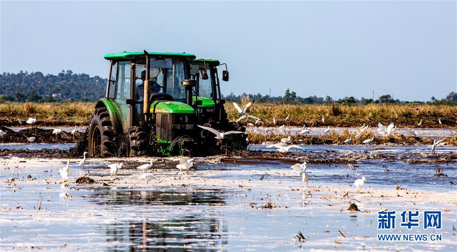 11月28日,在莫桑比克万宝莫桑农业园,拖拉机进行播种前的准备工作。新华社记者 张宇 摄