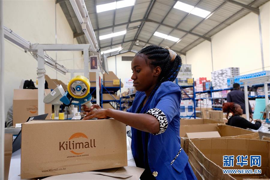 11月1日,在电商平台Kilimall位于肯尼亚首都内罗毕南郊的仓库,一名工作人员在打包商品。中国作为互联网消费领域的领先者,不断从技术和商业等多个层面为非洲电商发展提供有益借鉴。 新华社记者 杨臻 摄