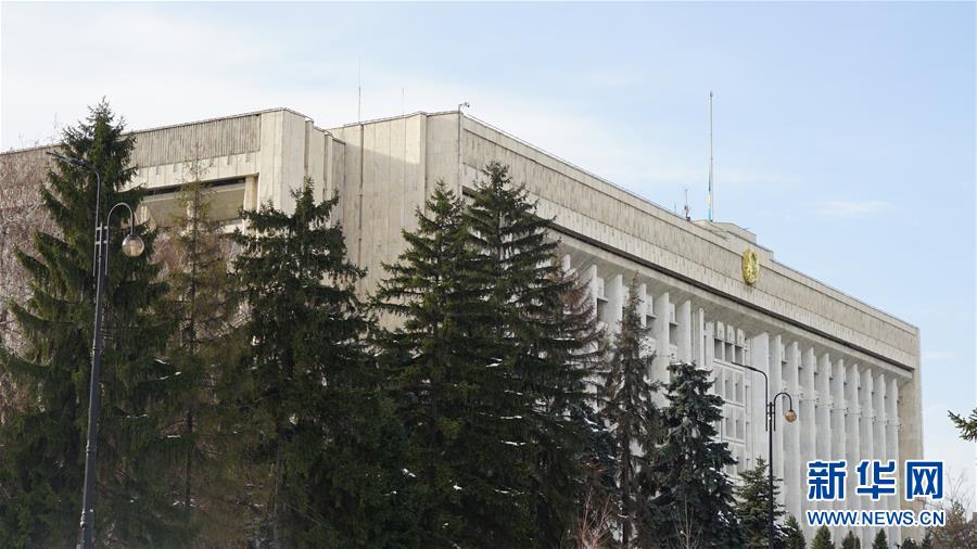 12月28日,哈萨克斯坦阿拉木图市政府降半旗,哀悼失事客机遇难者。新华社发(奥斯帕诺夫摄)