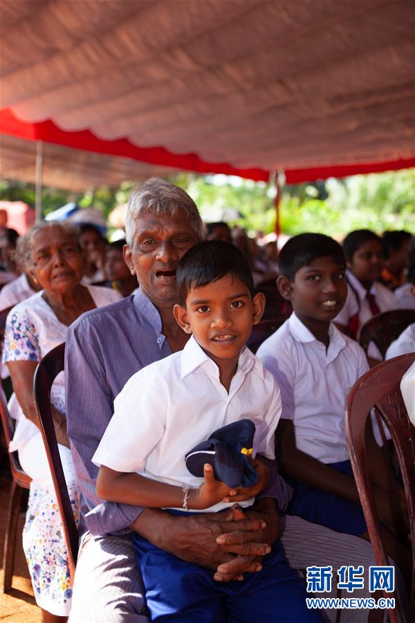 12月27日,在斯里兰卡西部贫困村帕尼拉,人们参加赠送仪式。 当日,中国招商局集团下属科伦坡国际集装箱码头有限公司工作人员来到帕尼拉,开展定点帮困扶贫活动,向村里的学生和老人赠送学习用品和保健品。 新华社发(科伦坡国际集装箱码头有限公司供图)