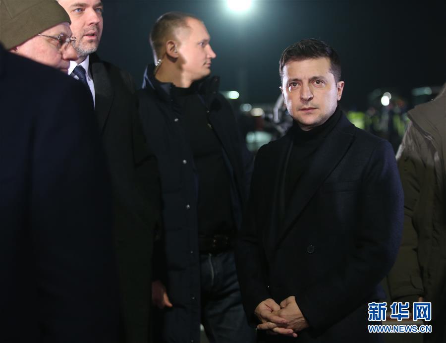 12月29日,在乌克兰首都基辅,乌克兰总统泽连斯基(右一)等待被交换人员。 乌克兰政府与乌东部民间武装29日在顿涅茨克州的戈尔洛夫卡市附近交换在押人员。这是2017年以来双方首次大规模交换在押人员。 新华社发(谢尔盖·斯塔拉斯坚科摄)