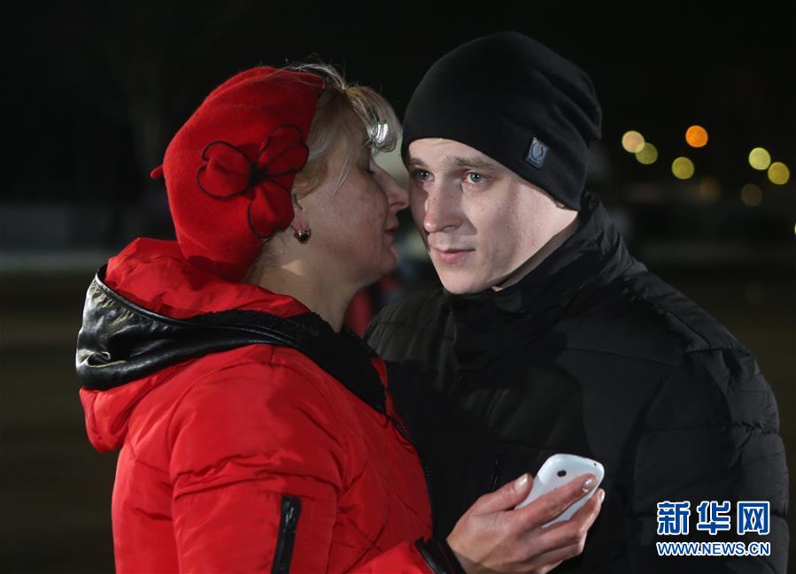 12月29日,在乌克兰基辅鲍里斯波尔国际机场,被交换人员与家人团聚。 乌克兰政府与乌东部民间武装29日在顿涅茨克州的戈尔洛夫卡市附近交换在押人员。这是2017年以来双方首次大规模交换在押人员。 新华社发(谢尔盖·斯塔拉斯坚科摄)