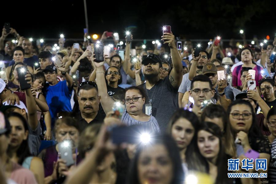 8月4日,人们在美国得克萨斯州埃尔帕索参加守夜悼念活动。埃尔帕索市8月3日发生一起严重枪击事件,造成22人死亡。