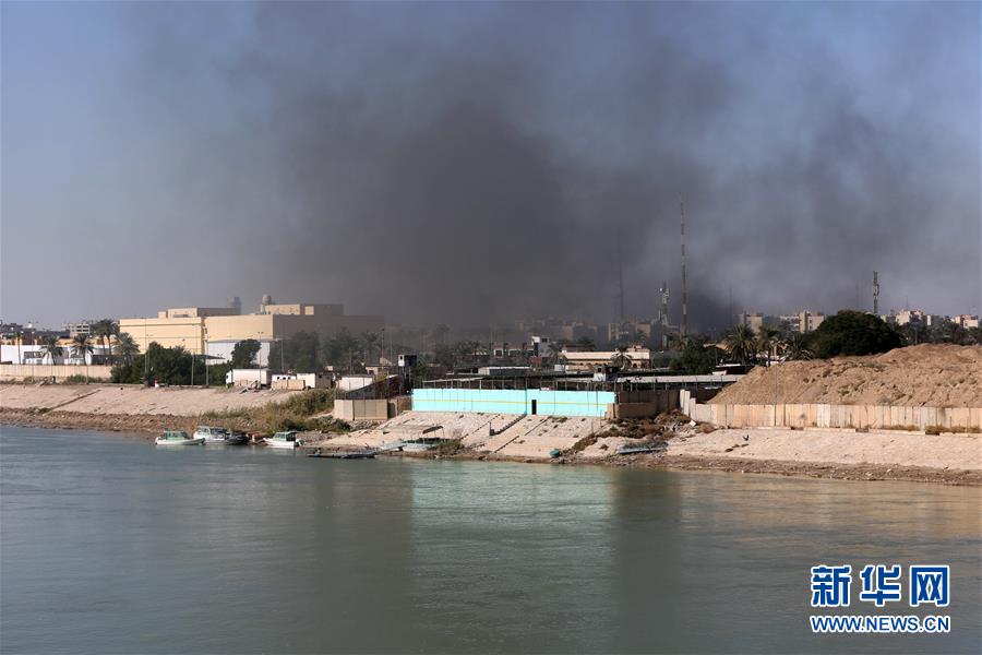 12月31日,在伊拉克巴格达,美国驻伊拉克大使馆冒出浓烟。新华社发(哈利勒·达伍德摄)