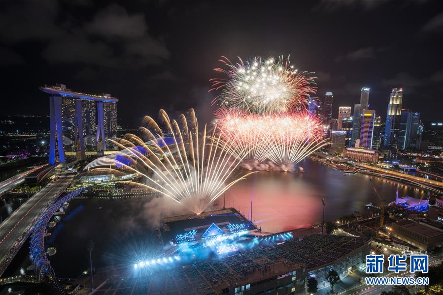 2019年12月31日,新年焰火在新加坡浮动舞台举行的滨海湾2020年倒数活动中燃放。 新华社发(邓智炜摄)