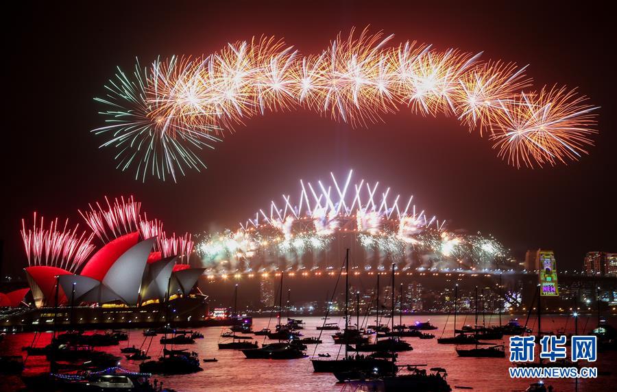 当地时间2020年1月1日,澳大利亚悉尼歌剧院和海港大桥畔燃放烟花,庆祝2020年的到来。 新华社记者 白雪飞 摄