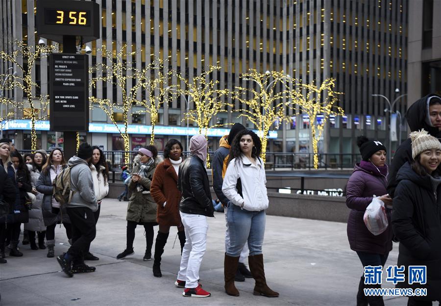 12月31日,在美国纽约,人们排队准备进入时报广场参加跨年庆祝活动。 当日,美国纽约时报广场举行一年一度的跨年庆祝活动。 新华社记者 韩芳 摄