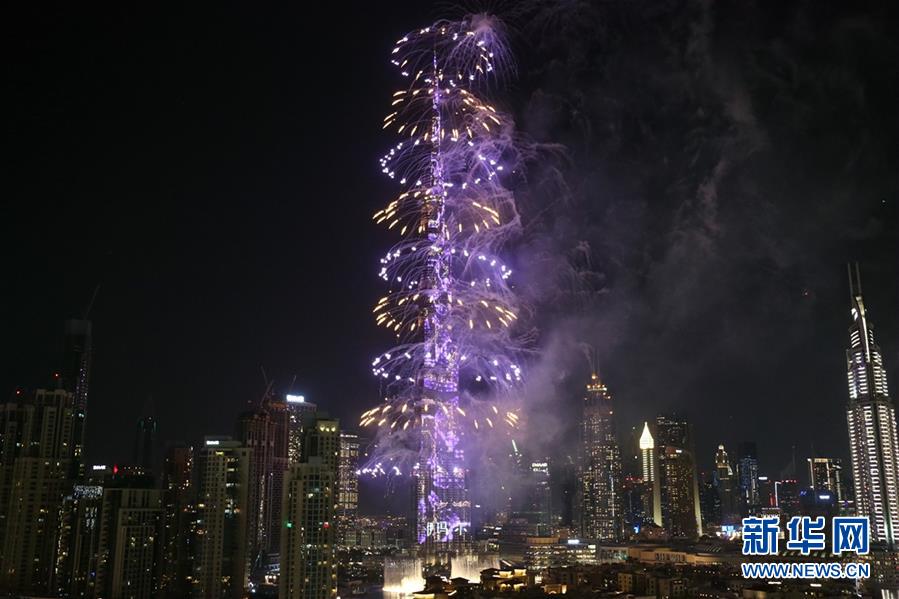 这是2020年1月1日拍摄的阿联酋迪拜哈利法塔跨年烟火表演。 新华社记者 苏小坡 摄