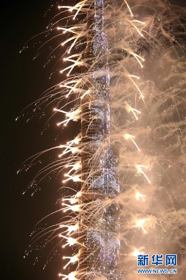 这是2020年1月1日拍摄的阿联酋迪拜哈利法塔跨年烟火表演。 新华社记者 苏小坡 摄