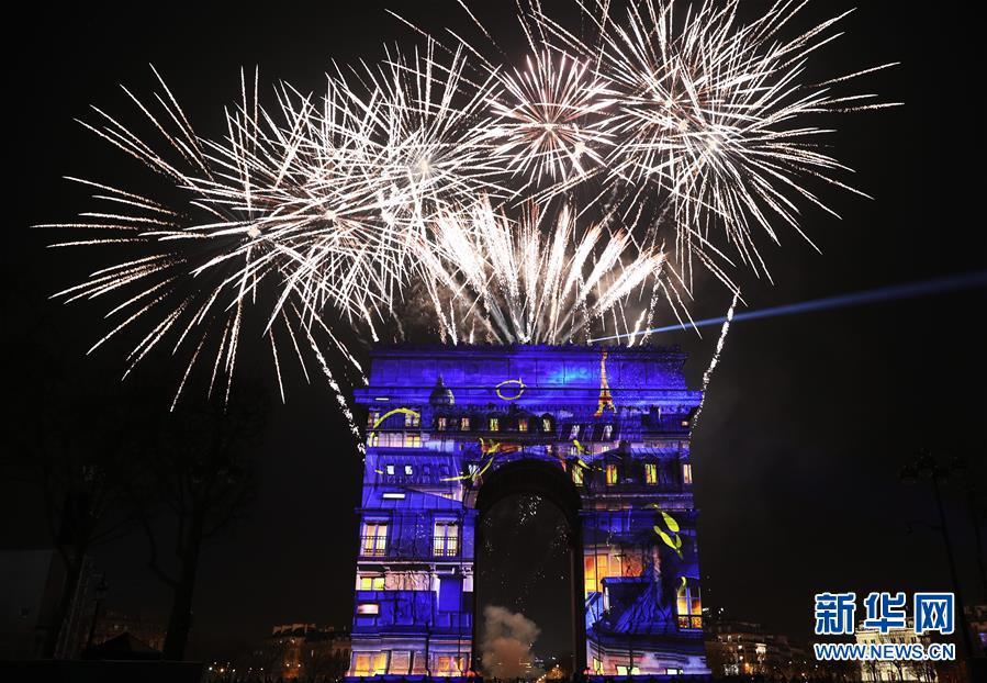 1月1日,新年焰火在法国巴黎凯旋门上空绽放。 新华社记者 高静 摄