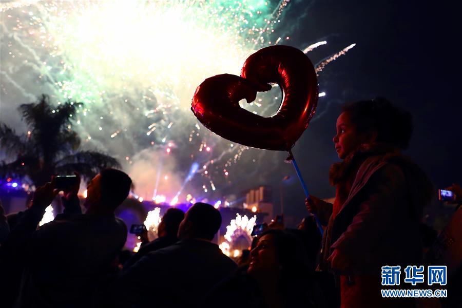 1月1日,在埃及首都开罗,人们观看焰火。 新华社发(艾哈迈德·戈马摄)