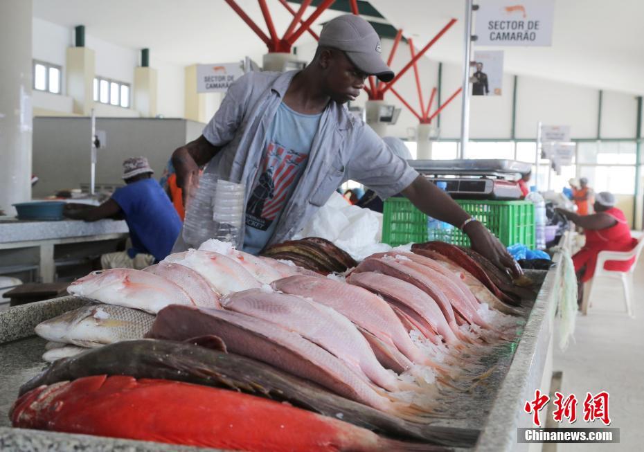 近日,记者走访了非洲最具知名度的自由市场之一——莫桑比克马普托海鲜市场。图为海鲜市场内摆放的各种海鲜。中新社记者 王曦 摄