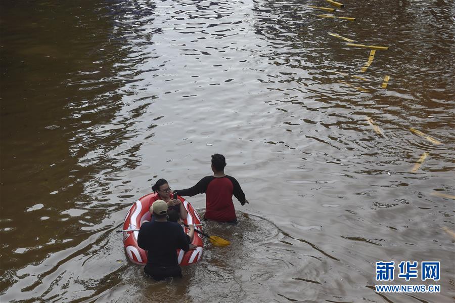 1月2日,在印度尼西亚雅加达,人们在积水中前行。 新华社发(阿贡摄)