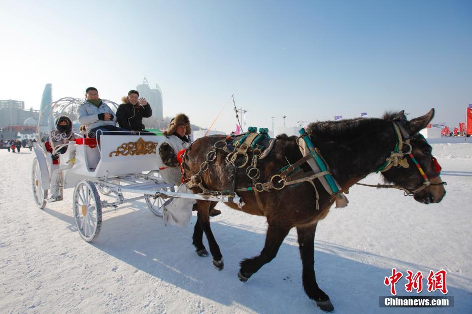 中外游客乐游哈尔滨松花江冰雪嘉年华
