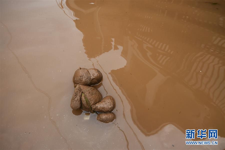 这是1月3日在印度尼西亚雅加达拍摄的一只被泥水浸泡的玩偶。新华社发(阿贡摄)