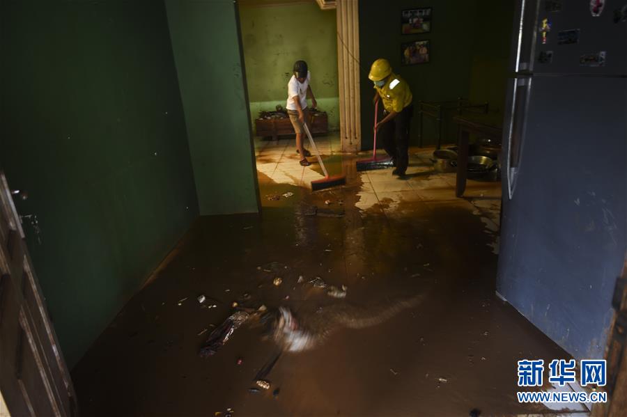 1月3日,在印度尼西亚雅加达,人们在洪水过后清理地面。新华社发(阿贡摄)