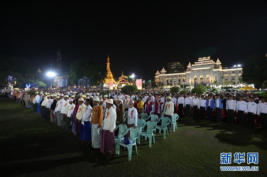 1月4日清晨,在缅甸仰光,人们参加独立日升旗仪式。 当日,缅甸举行仪式庆祝国家独立72周年。 新华社发(吴昂摄)